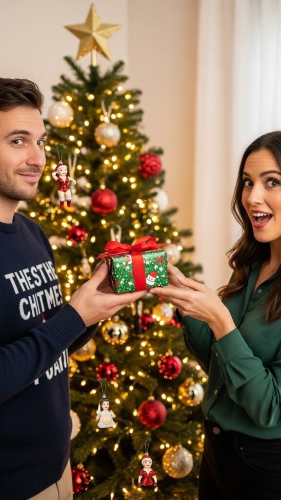 When you gift it, you don’t just hand it over; you explain the meaning behind it, slowly, playfully, teasingly. Maybe the ornament is shaped like lips, hinting at more kissing. Maybe it’s something spicy like handcuffs or lingerie. Or maybe it’s something beautifully emotional like a star symbolizing how they light up your life. The magic here is storytelling—every ornament comes with an intimate explanation that reveals how deeply you observe, desire, and appreciate your partner. When you place them on the tree together, it becomes a moment filled with connection, laughter, and sparks of desire. Over the years, your Christmas tree becomes a museum of your love story—filled with inside jokes, romantic symbolism, and sexy little secrets that only the two of you understand.