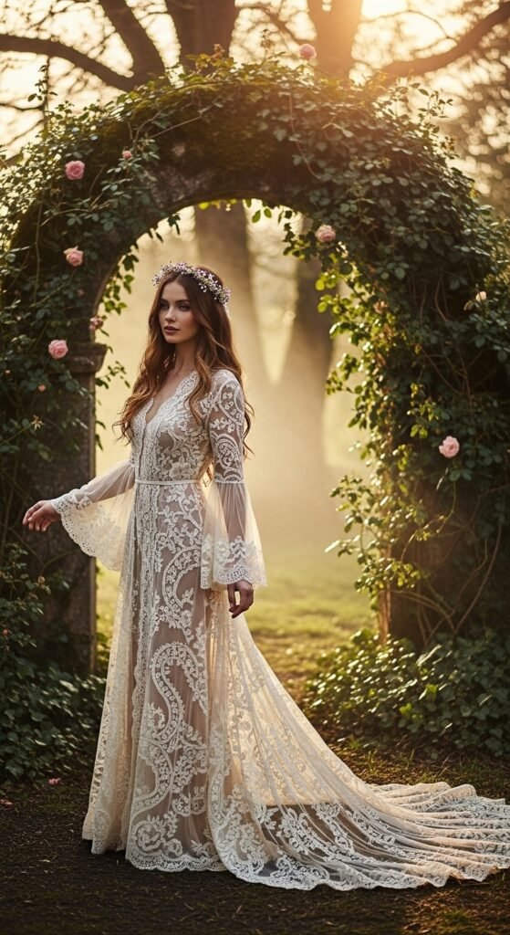 12. Lace Robes With Sheer Panels for a Fairytale Moment