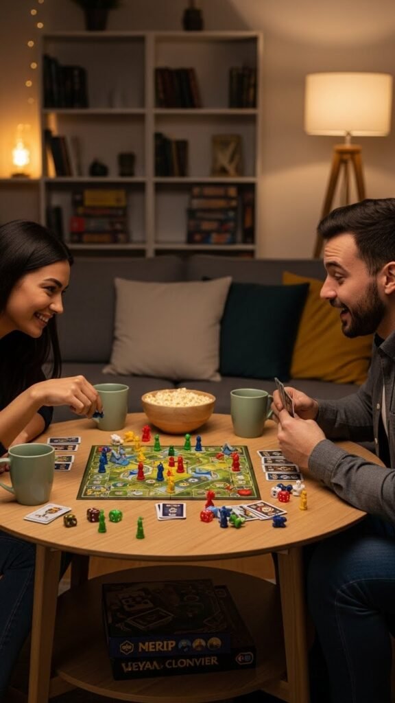 Turn the evening into a playful, competitive, and laughter-filled experience with a game night. You can choose board games, card games, trivia, or even couples’ games designed to spark intimacy. Make the night more exciting with fun stakes: the winner chooses dessert, the next date idea, or a small playful reward. Games naturally bring out laughter, teasing, and teamwork. They open the door for flirty moments and help you connect in a lighthearted way. This date is great for couples who want something energetic, funny, and bonding — a perfect mix of competition and chemistry.