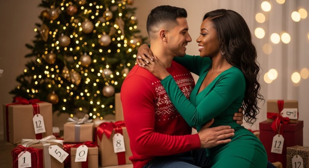 This one’s classic but never outdated. Hang mistletoe above your bed or doorway — and every time you both pass under it, you must kiss. The rule applies for the entire day. It turns simple moments — grabbing coffee, brushing by in the hallway — into sparks of passion. Over time, it builds anticipation. Mistletoe kisses aren’t about habit; they’re about mindfulness — stopping to love your partner in the middle of life’s chaos. Each kiss becomes a small act of devotion, saying, “Even in the rush of the holidays, you’re still my favorite part.”