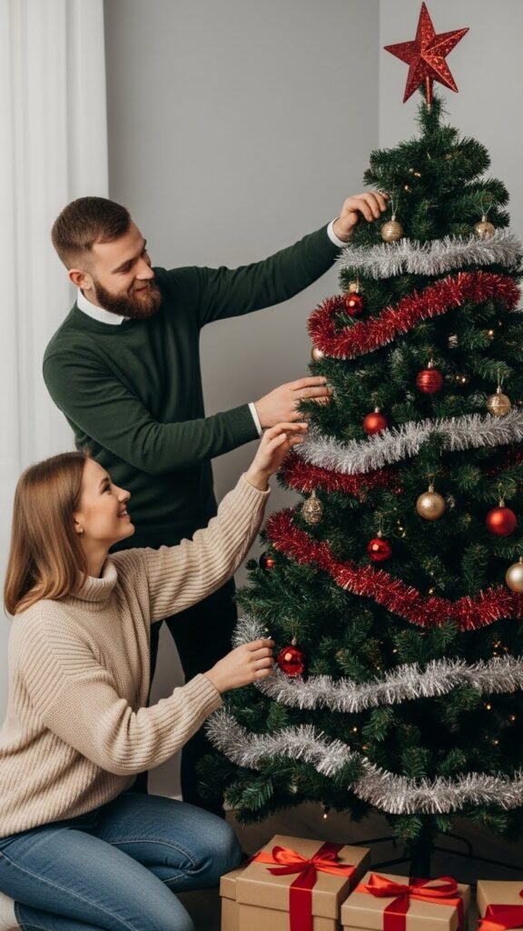 Choosing where each ornament goes encourages teamwork and playful debate. One partner may prefer symmetry, while the other enjoys creative chaos, and those differences add charm to the experience. Soft Christmas music playing in the background enhances the mood, turning your home into a warm, festive sanctuary filled with love and anticipation.