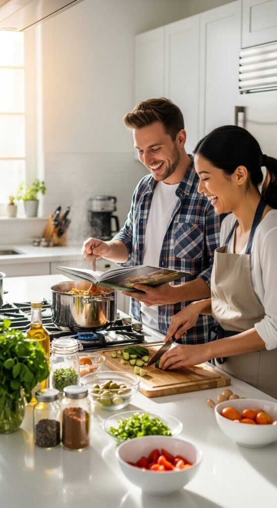 Cooking a new recipe together is a fun way to bond and communicate. Choosing the recipe encourages teamwork and shared decision-making. Preparing ingredients side by side creates space for natural conversation. Mistakes often turn into laughter and memorable moments. Cooking together builds patience and cooperation. The process feels just as rewarding as the final meal. Sharing food you made together deepens emotional connection. It also helps couples appreciate each other’s efforts. Even simple dishes feel special when made with love.