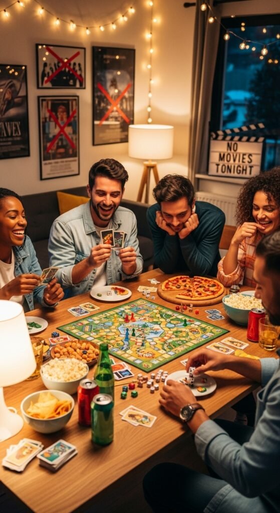 A movie-free game night brings energy and playfulness into your relationship. Board games and card games encourage laughter and friendly competition. Playing together helps couples relax and enjoy lighthearted moments. Games also improve communication and teamwork. Winning becomes less important than having fun together. This activity breaks routine and reduces stress. Playfulness keeps relationships fresh. Shared laughter strengthens emotional bonds. Joy is a powerful connector.
