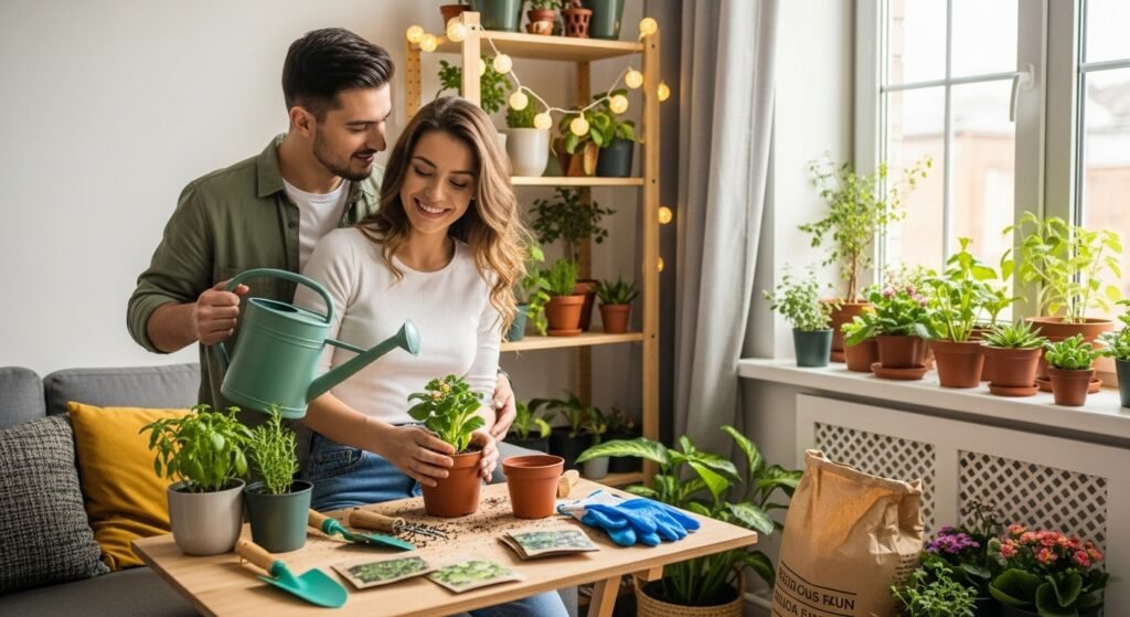 Start an indoor garden together using herbs, succulents, or small vegetables that can grow indoors. Research plant care, set up growing areas, and tend to your garden together. Document growth progress with photos and enjoy using homegrown ingredients in your cooking.