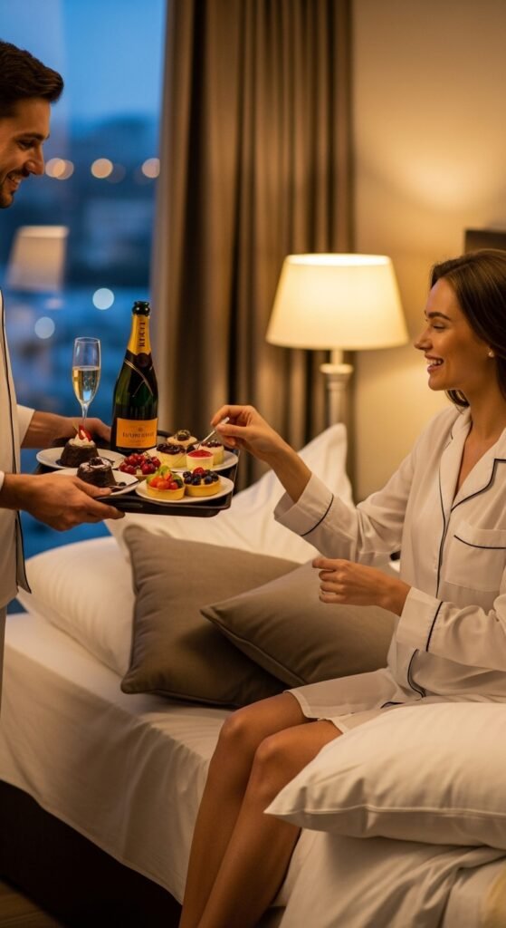 Skip the dining room and celebrate with sweetness in bed. Serve his favorite birthday cake or dessert in a playful, intimate way. Chocolate-dipped strawberries, whipped cream, or even fondue can double as both snacks and playful props. Feeding each other desserts creates closeness and a fun way to mix romance with indulgence. If you want to make it cheeky, write “Happy Birthday” in frosting or use cake as part of your playful activities. Combining sweetness with sensuality makes this moment unforgettable.