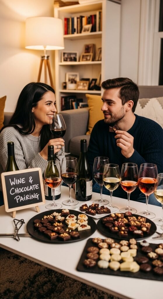 Pick up a few mini bottles of wine or a selection of chocolates and create your own tasting session in the bedroom. Pair different flavors, compare notes, and laugh about your “fancy” reviews. You can even blindfold each other for a playful twist. It’s low-effort but high in fun and romance. Plus, it’s a delicious excuse to cuddle up together.